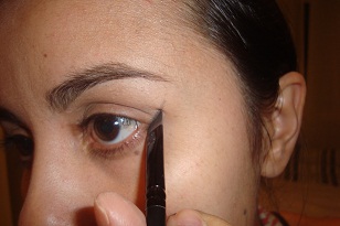 Use um píncel chanfrado para ''marcar'' a sombra escura, molhe o píncel e marque em diagonal c o canto externo da sua sombrancelha c o canto externo do seu olho, um tracinho (entre o canto externo da sombracelha e do olho imagine uma linha ligando esses 2 pontos , marque o meio , e desse meio que vc vai traçar, vai ficar parecendo tracinho de gato rsrs), faça isso nos 2 lados, aproveite e de fora p dentro passe a sobra na parte inferior dos olhos , onde passamos o lápis preto depois, assim vc já deixa esfumado, fica bonito e dá um efeito contínuo
