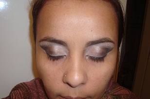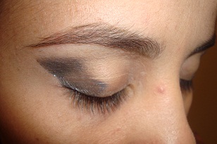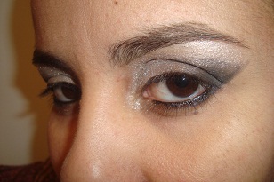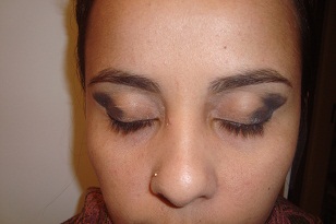 vai ficar parecendo um triângulo próximo ao cÔncavo do olho, com outro píncel vá acertando, passe uma outra cor intermediária para esfumar e não ficar marcado ,exemplo: se vc passou preto ou vinho escuro, passe um dourado como intermediária